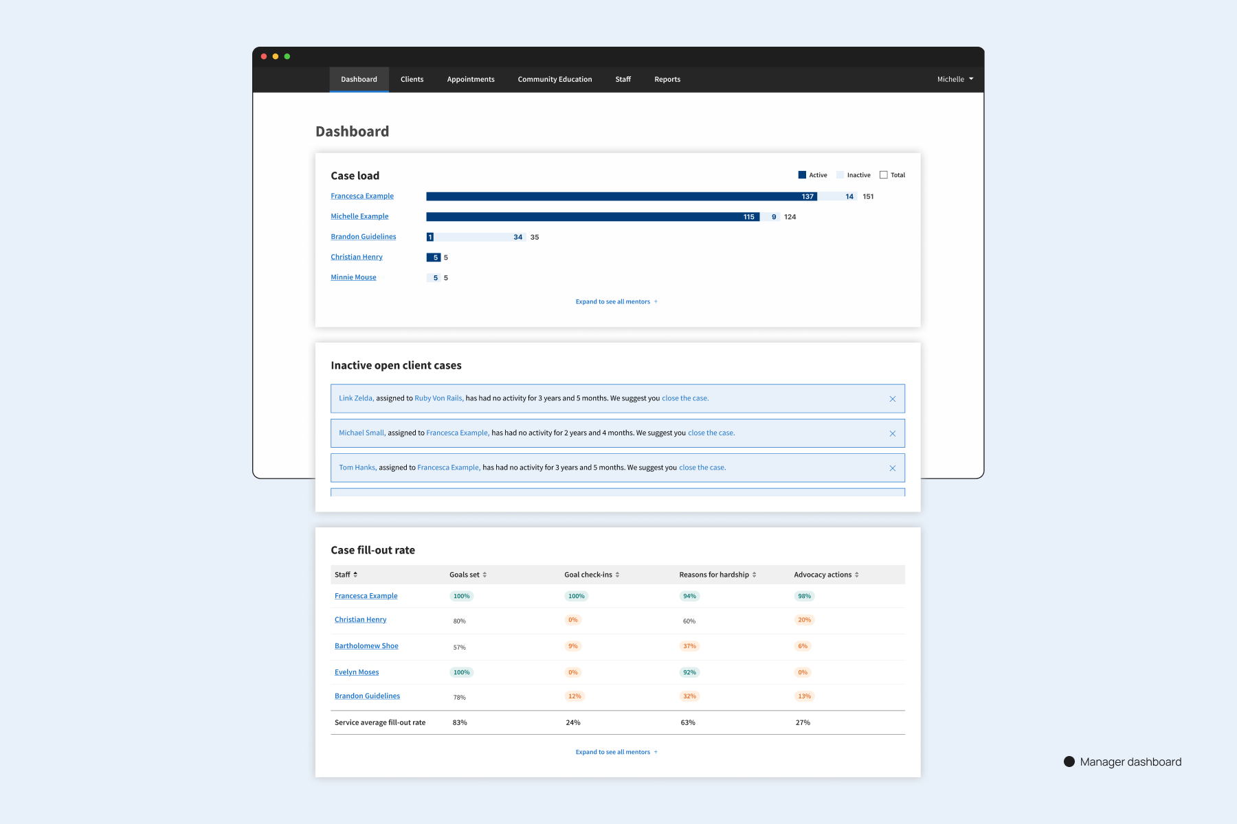 The more intuitive the user experience, the more capacity mentors and managers have to dedicate towards the impactful financial advocacy work they do, ultimately leading to better outcomes for clients.