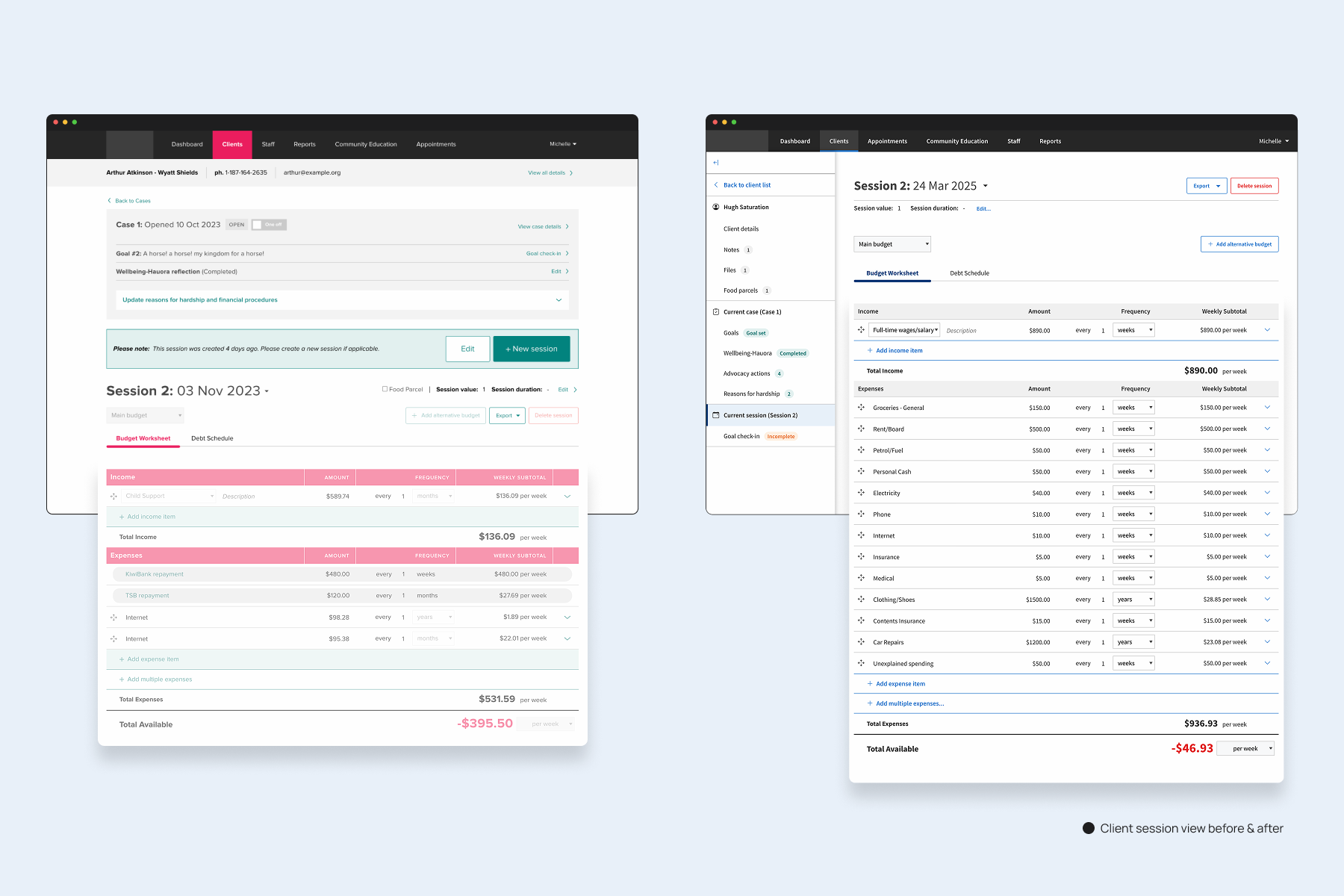 Our goal was to give mentors a more holistic view of their clients' financial situations to offer more tailored support. We also aimed to enhance service managers' oversight capabilities, allowing them better visibility of their service to better support their financial mentors.
